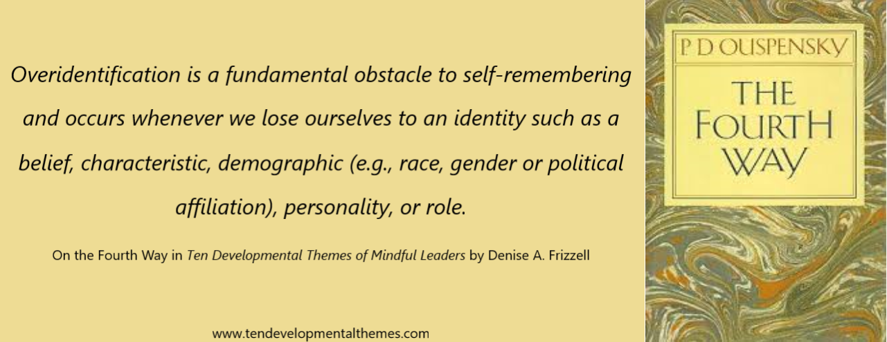 However, while greater self-awareness and self-management are highly desirable and deeply beneficial, if leaders stop there, they may solidify their identity around their personality type or temperament. This type of solidification of personality can be referred to as overidentification which occurs when we orient our entire identity around a descriptive quality or characteristic such as personality type. Overidentification leads to rigidity, defensiveness, hyper-sensitivity, and hyper-competitiveness as if one’s life were on the line because, in a state of overidentification, it is! Consequently, this internal state significantly limits growth, maturation, and wholeness, because it blocks, refuses, or destroys any impressions that contradict the solidified identity.